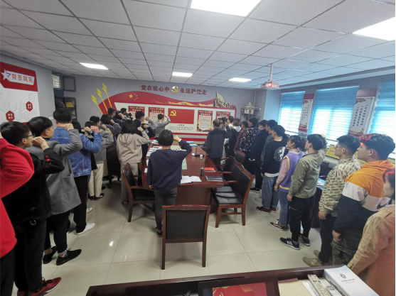 首先由郭凤丽同志代表支委会向支部大会宣布发展名单,并汇报对入党申请人司成龙等人的培养教育考察和政审情况。司成龙等二十位申请人宣读《入党志愿书》,汇报对党的认识、入党动机、本人履历、现实表现以及应向党组织说明的其他问题。其次,司成龙等二十位同志的入党介绍人分别介绍了申请人的培养教育考察等情况,表明是否同意发展其入党的建议。随后支部党员发表了各自的意见,经参加本次支部党员大会有表决权的全体正式党员举手表决,一致同意接收司成龙等20名同志为中共预备党员。支部书记郭凤丽同志宣读了此次大会的决议。最后,由张琛同志带领大家面向党旗郑重宣誓。