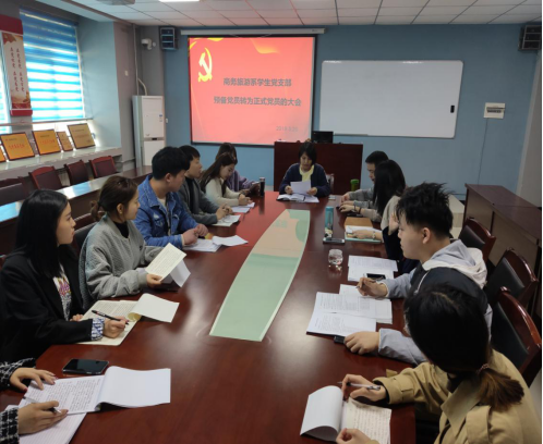 商务旅游系学生党支部于2019年3月20日召开党员大会,讨论张盼盼等9名同志的转正申请。支部应到的正式党员5名,实到5人,会议由支部书记郭凤丽主持。经会前征求党员群众意见,转正前公示,本次预备党员转正式党员大会按照规定程序召开。