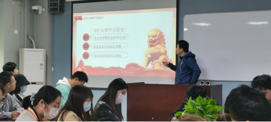 4月14日下午,商务旅游系学生党支部开展党史学习教育曁支部书记讲党课第一讲,商务旅游系学生党支部书记张琛为支部党员45余人讲授了“为什么学习党史、怎么学习党史”为主题的党课。