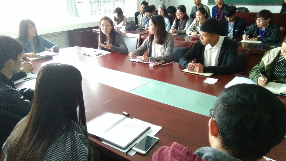 2015年10月28日下午13:30分,商务旅游系于教学楼4A310召开2015级新一届全体学生干部座谈会,到会有商务旅游系王书记,辅导员卢毅鸣和张晨斌老师,以及全体学生会成员。会上,王寅书记首先和大家介绍了自己和两位辅导员老师,并与大家相互认识且发表讲话。