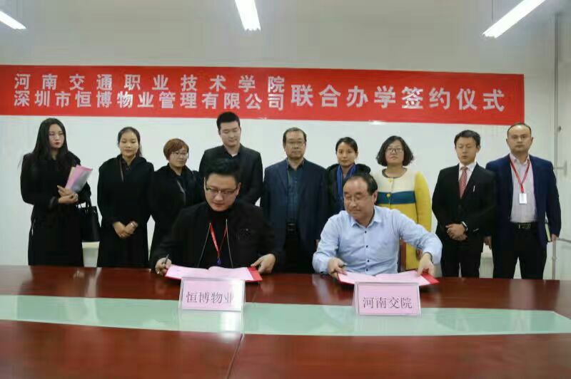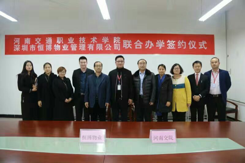 12月7日下午三点,商务旅游系与深圳市恒博物业管理有限公司郑州航空港区分公司隆重举行了校企合作的签约仪式。学院副院长谢福泉、商务旅游系主任陈振锋以及恒博物业公司总经理魏小允、副总经理赵亚楠等参加了本次签约仪式。