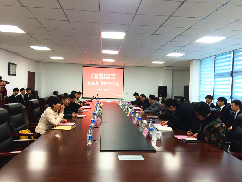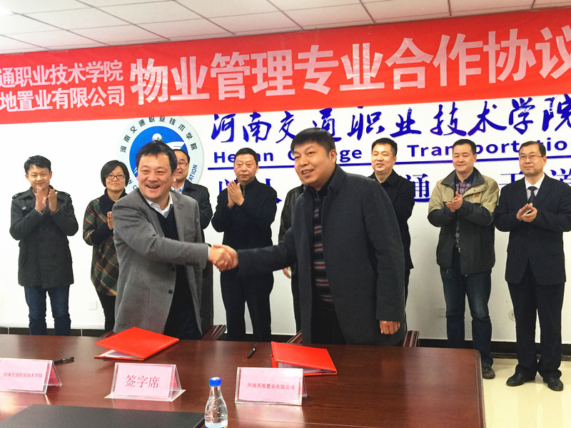 3月15日下午4:00,河南交通职业技术学院物业管理专业与河南英地置业有限公司举办校企合作签字仪式。英地置业有限公司董事长高忠、学院院长李强、副院长贺绍华、副院长解福泉及商务旅游系相关负责人共同出席,由商务旅游系主任陈振锋主持此次签字仪式。