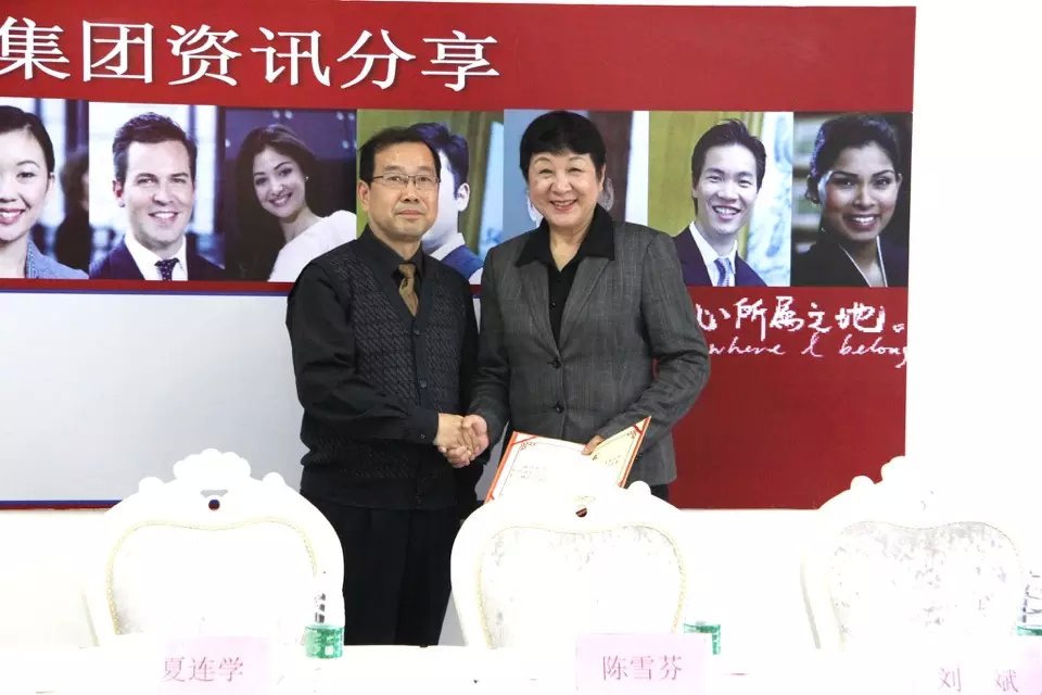 商务旅游系主任陈振锋为万豪集团校企合作处大中华区总监陈雪芬女士颁发聘书