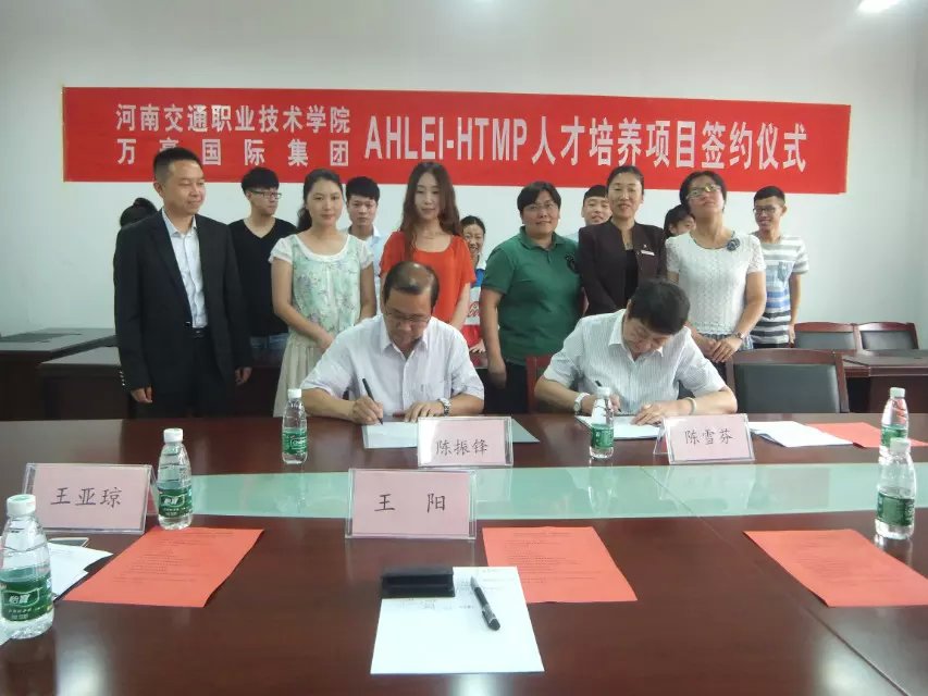 出席此次签字仪式的领导有:商务旅游系主任陈振锋、酒店教研室主任徐硕、系学管王亚琼、团总支负责人杨梦璐、万豪国际集团中国区校企总监陈雪芬、JW万豪酒店人力资源总监邵峰、郑州汇艺万怡酒店人力资源部经理戴明生、美国饭店协会教育学院河南代表处负责人王阳,2013级学生代表15人等。