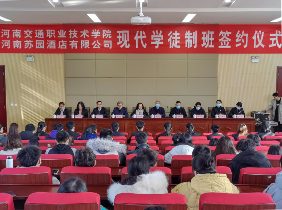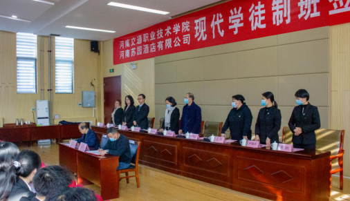苏园班于2020年9月份开始筹建,入班学生经由学院和酒店双方共同筛选确定,与河南苏园酒店有限公司的“百名职业经理人”培养计划相对接,旨在定向为企业打造餐饮、宴会、营销等各部门的高级管理人才。苏园班是商务旅游系在学院积极推进现代学徒制试点专业建设工作的背景下提出并积极筹建的,其意义在于:于企业而言,借助高校生源优势和师资力量,吸收到优秀的在校大学生进入储备人才培养,提高了员工培养的效率和质量,为企业良性发展提供强大的人力资源后备;于学生而言,接受工学结合的双导师制培养模式,入班即与河南苏园酒店有限公司签订就业协议,就读期间享受现代学徒制特色专业独有的企业奖助学金,通过在校和在企业期间的管理课程与服务技能课程的学习,他们能够熟悉酒店各部门的基础服务技能,初步具备一定的管理意识,对酒店各部门基本运营有深刻体会。由此,毕业后即可胜任企业各门店基层管理岗位,毕业后一至三年内可担任中层管理者职位,实现高质量、高薪资、高忠诚度和可持续的就业;于学校而言,借助企业的实际经营场地、客源市场和经验丰富的在岗员工,为学生提供校内教学条件无法满足的全方位实训教学场景,给学生营造达到“学以致用”、促使其知行合一的学习和工作氛围,使之将职前教育进行得更为完善、透彻,成为真正的“拿得出来、用得上”的技能型人才,实现职业教育的培养宗旨;工学结合的教学模式加快了“双师型”教师队伍建设,在人才培养中把酒店的行业标准和院校标准相结合,不断提高教师的理论知识与实践技能,促进了教师教学管理的时效性和专业课程改革,助力推进专业建设及发展。