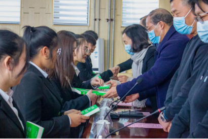 所有出席的嘉宾向同学们进行了授徽和赠书,仪式圆满结束。