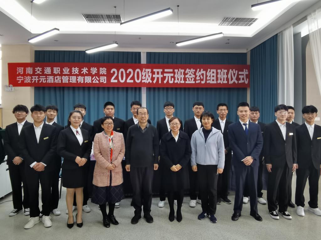 10月21日下午,商务旅游系酒店管理专业现代学徒制班“开元班”在东校区图书馆二楼大学生创业孵化基地举办2020级签约组班仪式。商务旅游系主任陈振锋、副主任郭凤丽、苗爱红及开元酒店集团宁波区域人力资源总监周晓君、招聘主管常星海出席仪式。