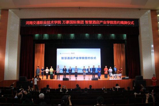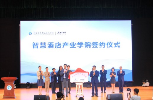 学校相关职能处室、院系负责人、商务旅游系全体教师和学生代表,共同见证河南交通职业技术学院与万豪国际集团智慧酒店产业学院成立。