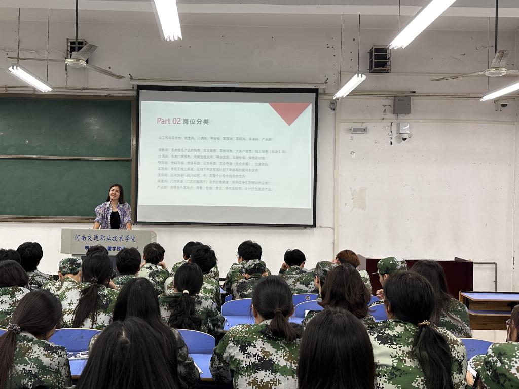 卢丽蕊,现任河南携程国际旅行社第一门市总经理,及河南荣修疗养服务有限公司法人,以其丰富的旅游行业经验,为新生们揭开了旅游行业的多元化面纱。卢丽蕊全面介绍了当前旅游行业的岗位分类、技能要求及薪资概况,鼓励同学们结合个人兴趣与市场趋势,早做职业规划,不断提升技能。她强调,面对瞬息万变的行业竞争,唯有不断学习、与时俱进,才能保持专业竞争力。