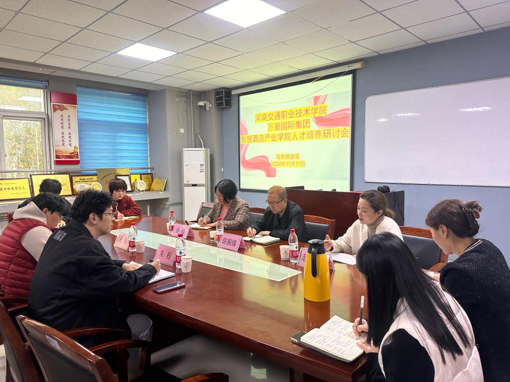 为进一步深化产教融合,推动产业学院创新发展,11月11日,商务旅游系与万豪国际集团召开智慧酒店产业学院人才培养研讨会。万豪国际集团大中华区校企关系高级经理朱程、河南校企人才培养项目负责人王阳,商务旅游系主任徐硕、党总支书记陈振锋,酒店管理与数字化运营专业教研室负责同志及专业指导教师代表参加会议。