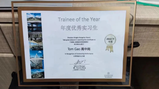 高中岗同学是我系2020级旅游管理专业的一名学生,现实习于宁波象山绿城喜来登度假酒店。实习期间,高中岗同学严格遵守酒店规章制度,态度端正,虚心好学,真诚待人,勤于向同事、领导请教。